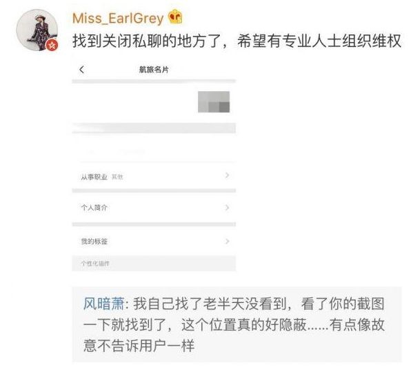 随后,多位网友在其微博下留言,表示航旅纵横APP上的“允许他人与我进行私聊”这一功能是默认开启状态。有些网友甚至不知道自己什么时候开启了这一功能。