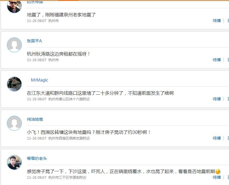 微博上也有不少杭州网友发布感受到震感的微博: