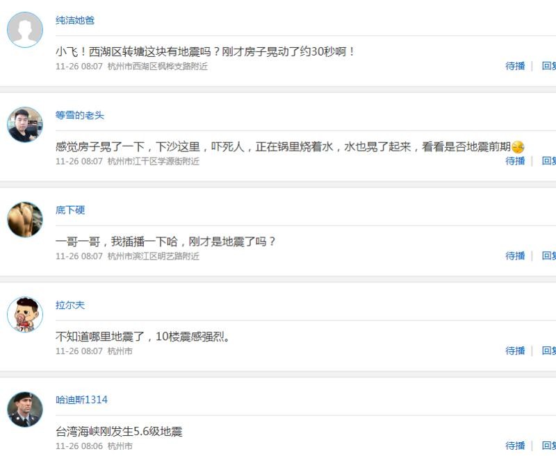 很多听众担心,杭州刚刚的摇晃是又一次地震?还是余震的发生?杭州地震局 杨处长坦言,这只是受台湾地震的波及: