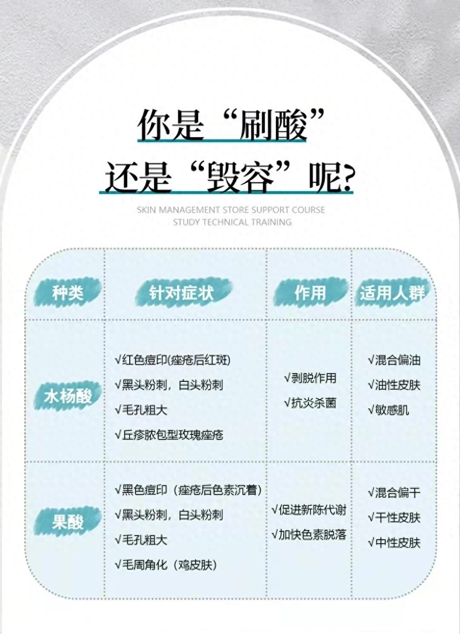 我们自己是可以“刷酸”的,但不同的酸针对症状不同,如果盲目使用就会导致皮肤过敏,甚至有可能“毁容”的情况发生。。。