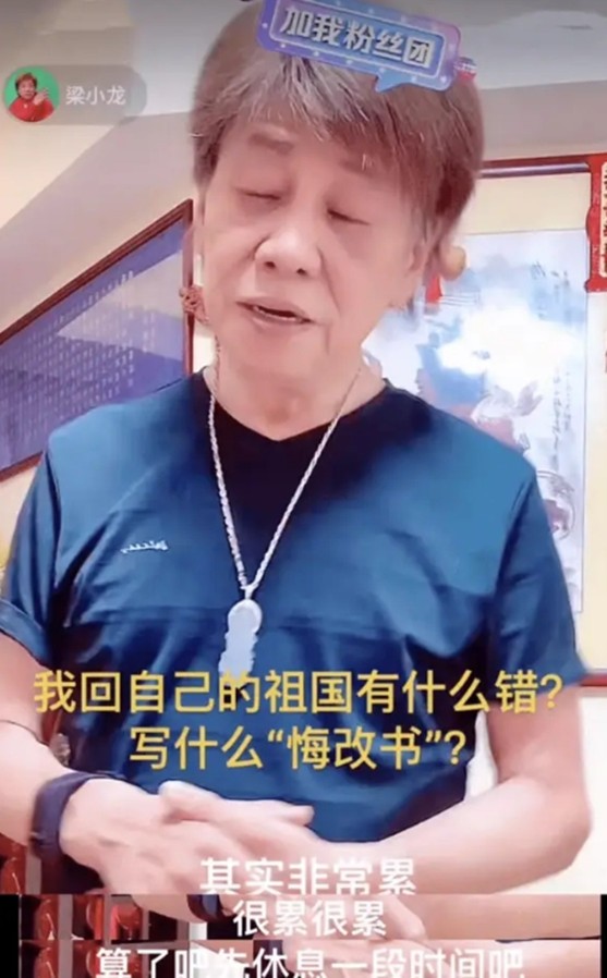 梁小龙怒气冲冲的告诉对方:“我回自己的祖国有什么错?我在大陆到处都有人与我讲话,人山人海的都围着我。”