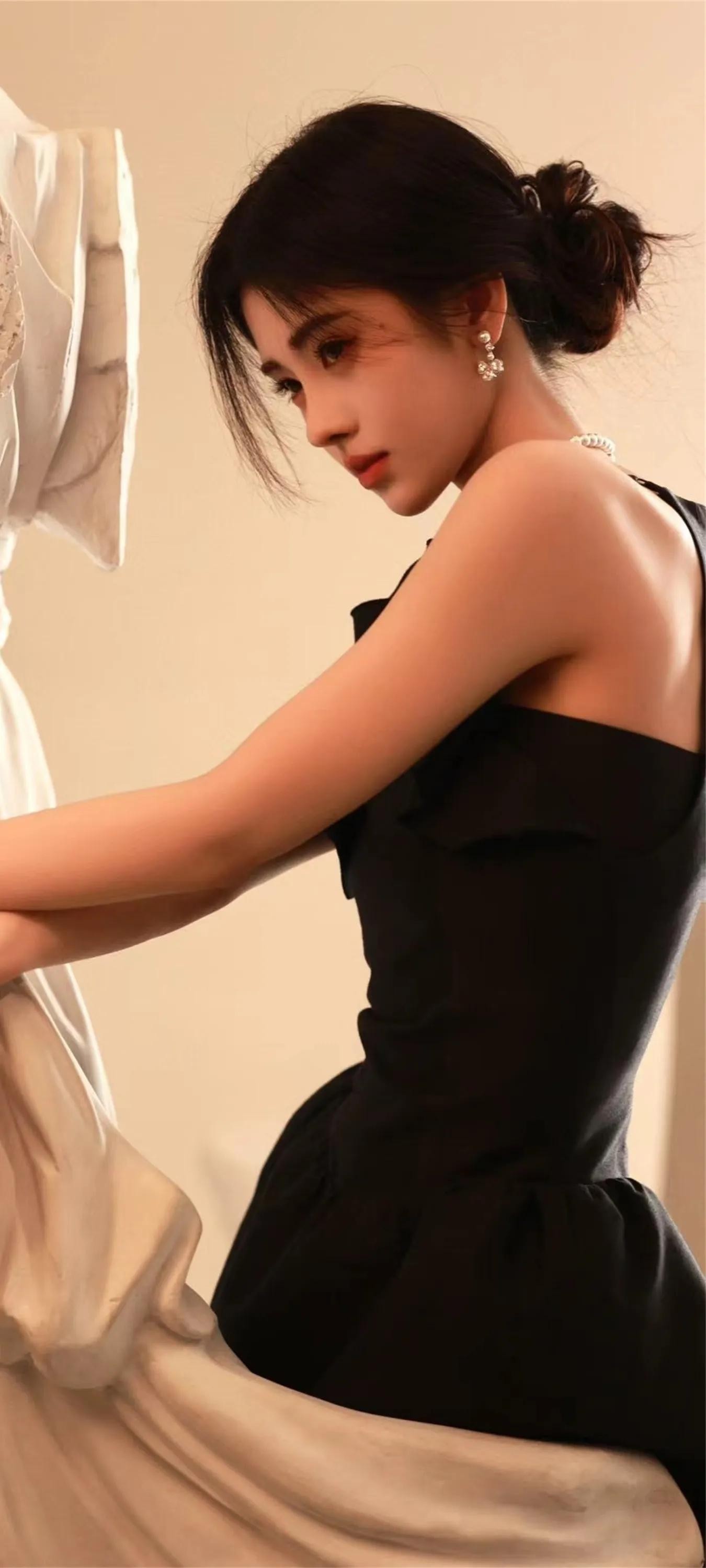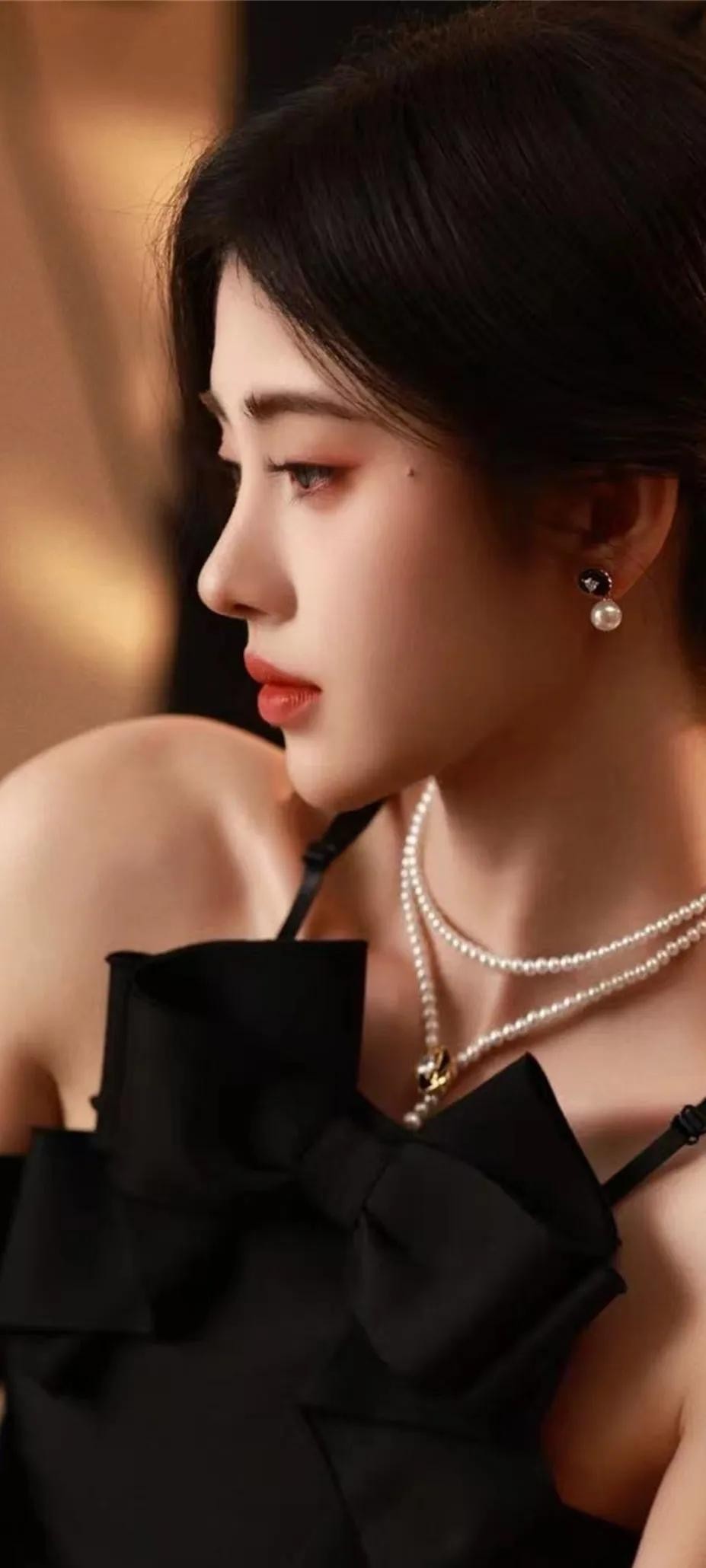 黑色吊带邂逅精致珍珠,优雅在光影中绽放,每一处细节,都诉说着独特魅力 。