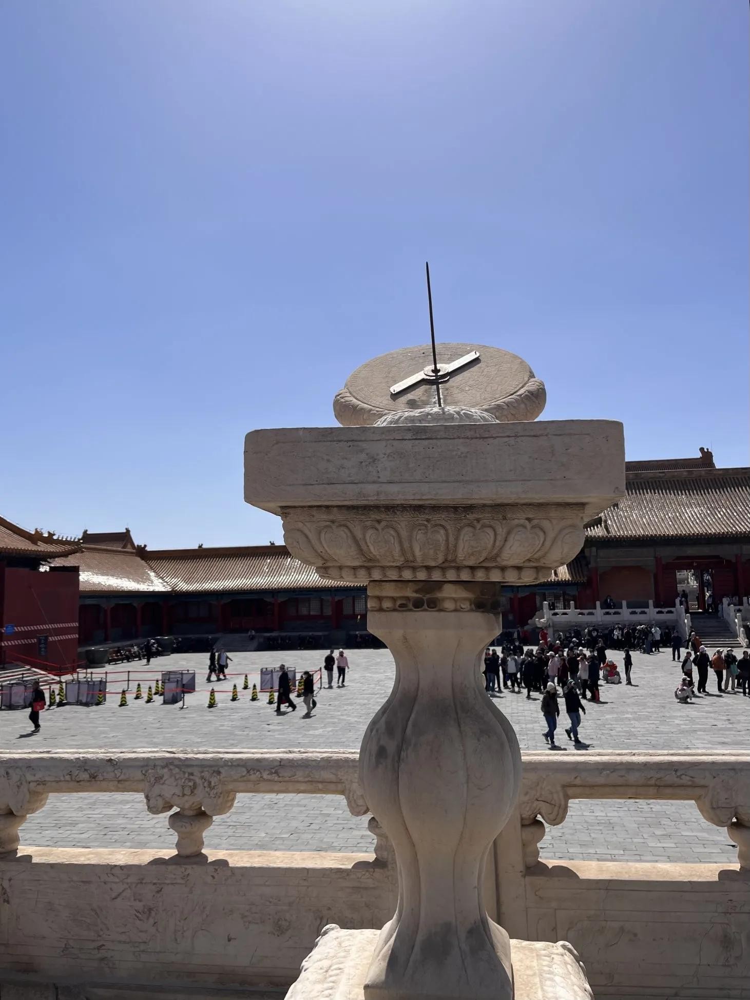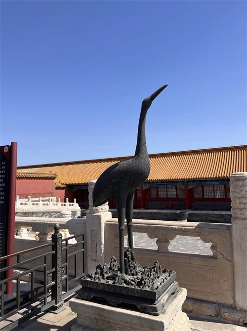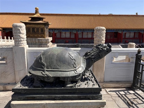 月台上陈设日晷(实物看起来很小,没有想象中那么大)、嘉量各一,铜龟、铜鹤各一对,铜鼎18座。