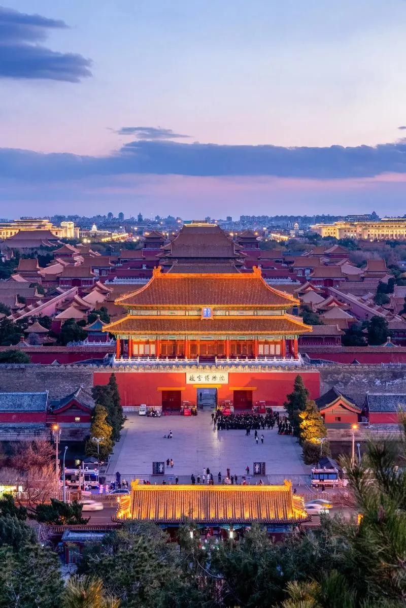 温馨提醒,如果是下午逛完故宫,可以去对面景山公园登一下万春亭。踏上万春亭远眺,故宫在余晖下尽显皇家恢宏,可以瞬间攫住你的心。夕阳的橙红色光辉倾洒在故宫的每一处角落,金色的琉璃瓦在余晖中闪耀着夺目光芒,宛如一片金色的海洋。太和殿、中和殿、保和殿等三大殿在落日的映照下,更显雄伟壮观,飞檐翘角仿佛要冲破天际,与晚霞相拥。