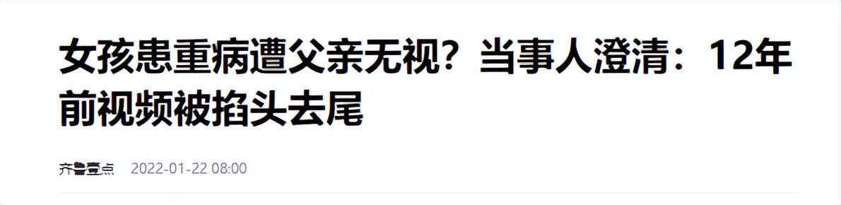 齐鲁壹点:女孩患重病遭父亲无视?当事人澄清:12年前视频被掐头去尾