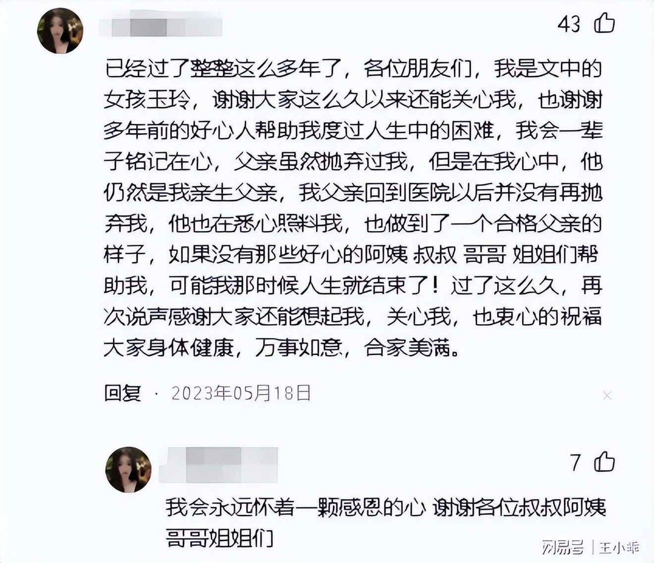 但不知道为何,玉玲的事情被发布在了网上,一时间引起了众多网友的关注,甚至大家还纷纷为玉玲捐款。这其中就有一位不知道姓名的企业家,他直接为玉玲捐了5万元,彻底缓解了玉玲治病的麻烦。