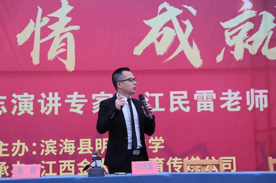 为培养有责任、敢担当、勇挑战、有毅力、懂感恩的创新型时代青年,帮助学生树立远大理想,激发奋力学习、实现梦想的昂扬斗志和内生动力,2月18日上午,滨海县明达中学3000多名师生齐聚学校操场,共同参与了主题为“点燃激情,成就梦想”的励志演讲报告会。学校特邀金太阳教育集团江民雷老师为全体师生作励志演讲。活动由龚成东副校长主持。