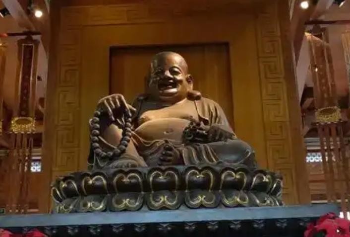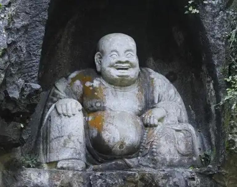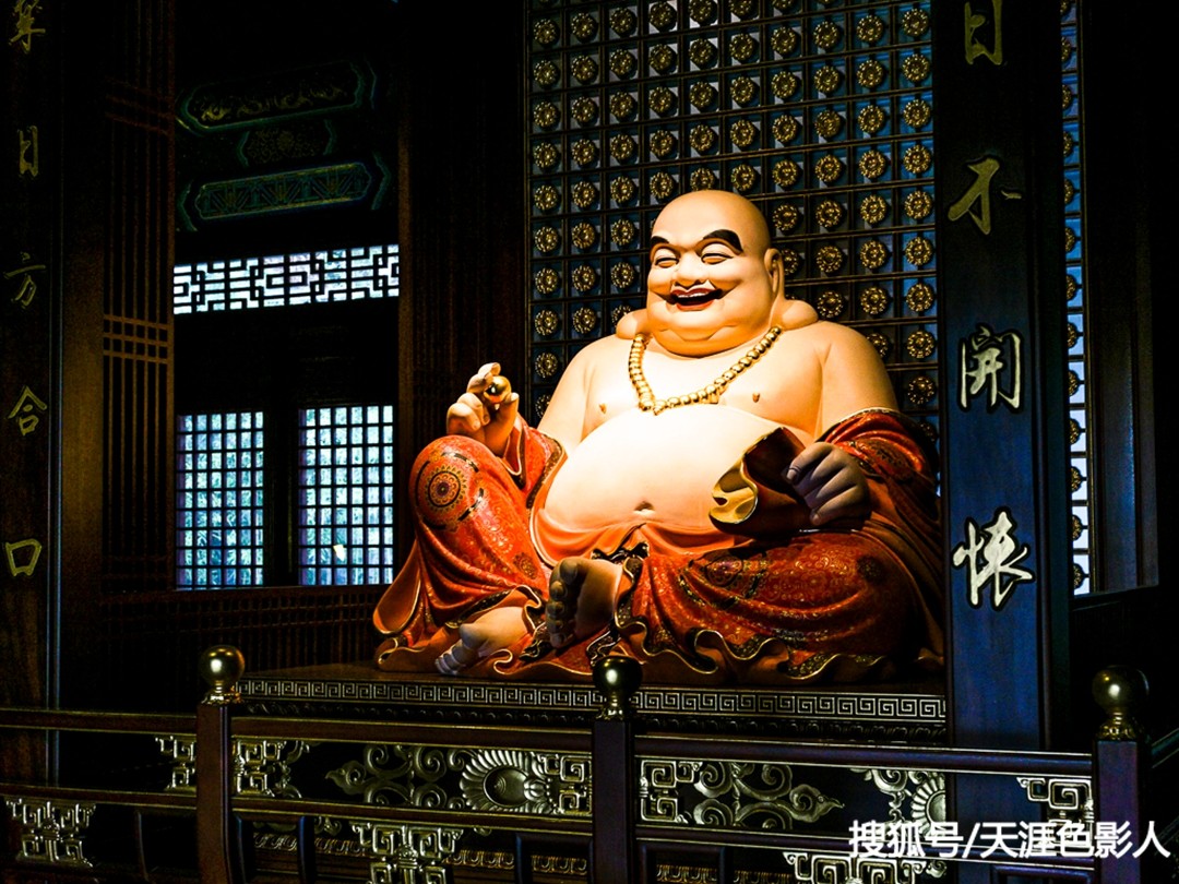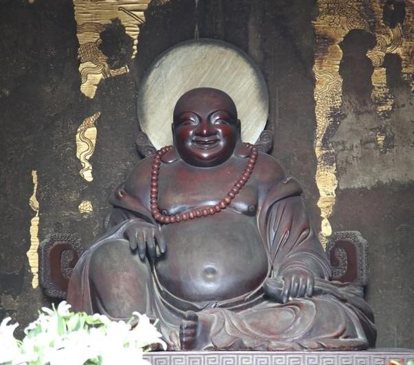 大家印象中的弥勒佛,多数是去寺院拜佛烧香时在天王殿看到的大肚弥勒佛。北京市潭柘寺天王殿供奉的弥勒佛旁的对联“大肚能容,容天下难容之事;开口便笑,笑世间可笑之人”,意思是大肚子能够容纳这世间难以容纳的事情,开口就笑天下可以笑的人。这副对联以弥勒佛的外形特征入手起意,告诉我们要放宽心,常开心。