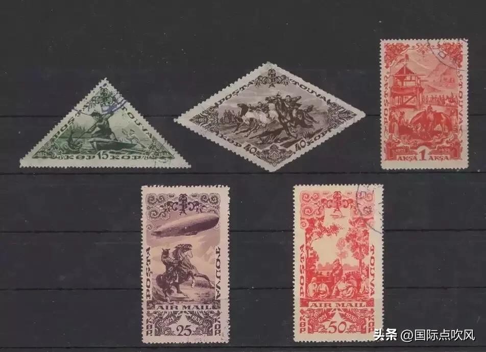第一件是一张旧邮票,图瓦人民共和国时期发行的邮票,后来被认为极为稀有,价值不菲,为收藏家所垂涎,售价不菲。