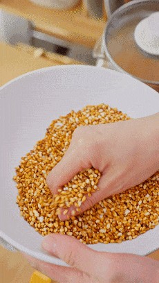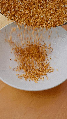 我这里炒了差不多20分钟分钟吧,炒出来的粳米是这样焦黄色的样子,就可以倒出来晾凉了。