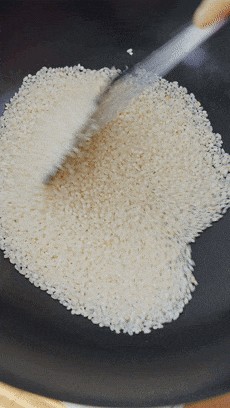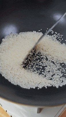 提前给锅烧热,全程小火的去炒这个粳米,这个过程中要不断的翻炒,避免粳米糊锅了。