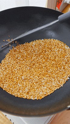 整个炒制的过程中,我们一定要时刻掌握炒米的状态。关键是掌握好火候,如果火候太大也容易出现外面糊糊的,里面还夹生的情况。
