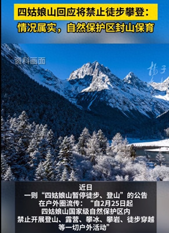 发生啥了?四姑娘山将禁止徒步攀登等活动?常规旅游不受影响!