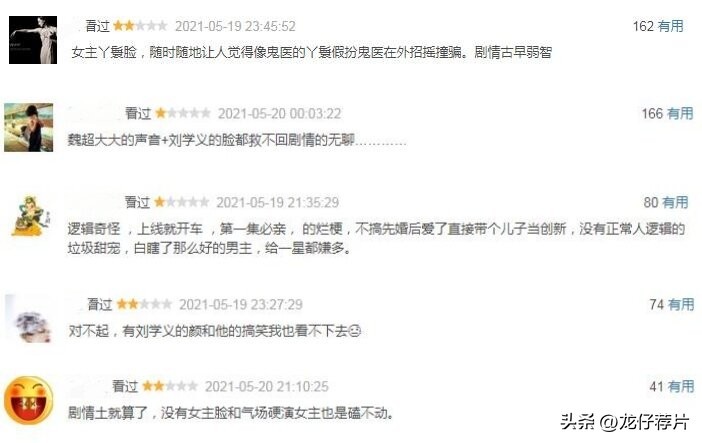 除了剧本不给力,本剧的女主同样是一言难尽,五官扁平、演技拉胯,时而表情僵硬,时而五官乱飞,和刘学义毫无CP感。从观众的评价也可以看出,剧本和女主完全浪费了刘学义的颜值和演技。