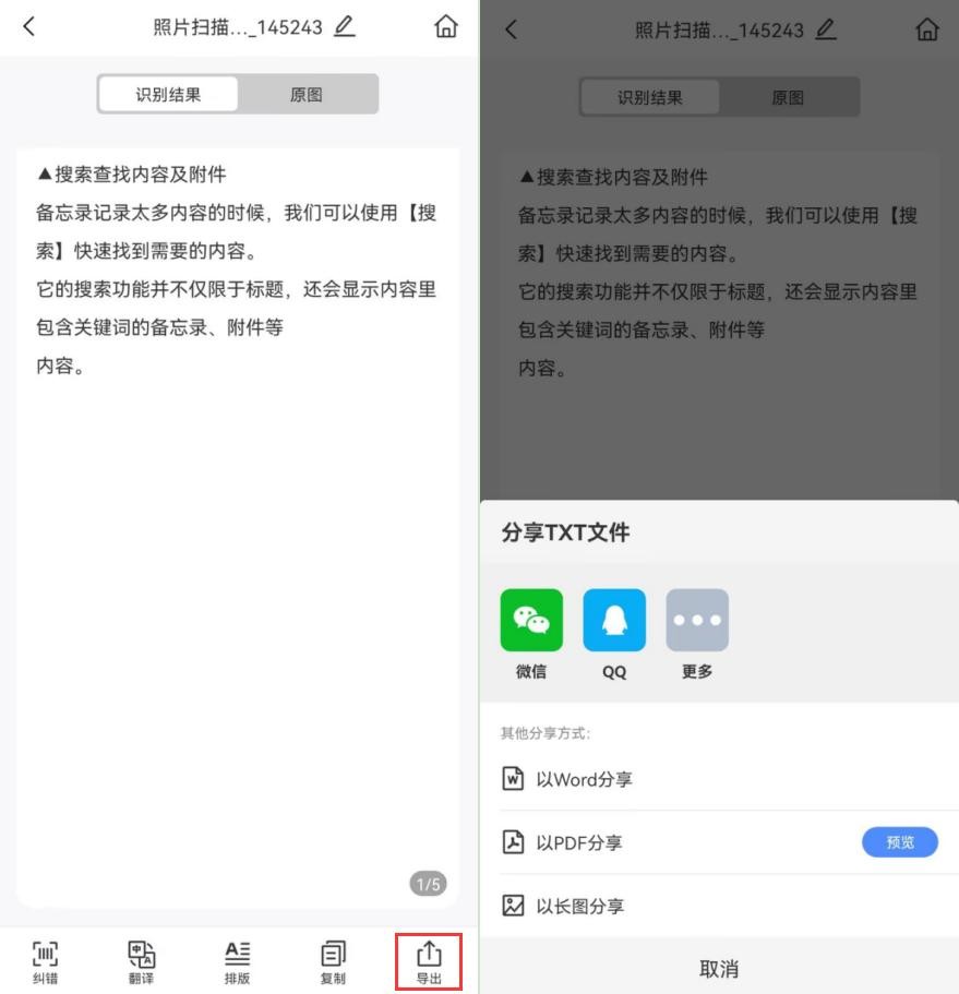 识别效果很好,不仅准确地识别出文字内容,还保留了原有的排版,识别结果选择复制,或者导出为Word、PDF等文件,节省了我们新建文档的时间。