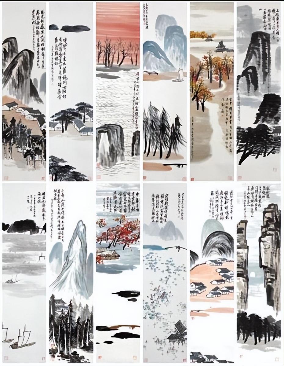 山水十二条屏