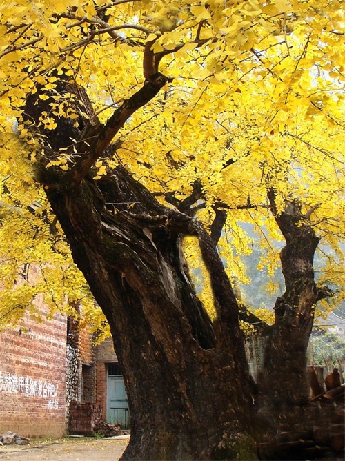 随州银杏谷,深藏群山之间,汇集成谷,五村一线贯穿,绵延数十里,有千岁以上的银杏308株,逾百年的17000多棵。银杏树旁有人居,古树傍有农舍,一派田园风光。
