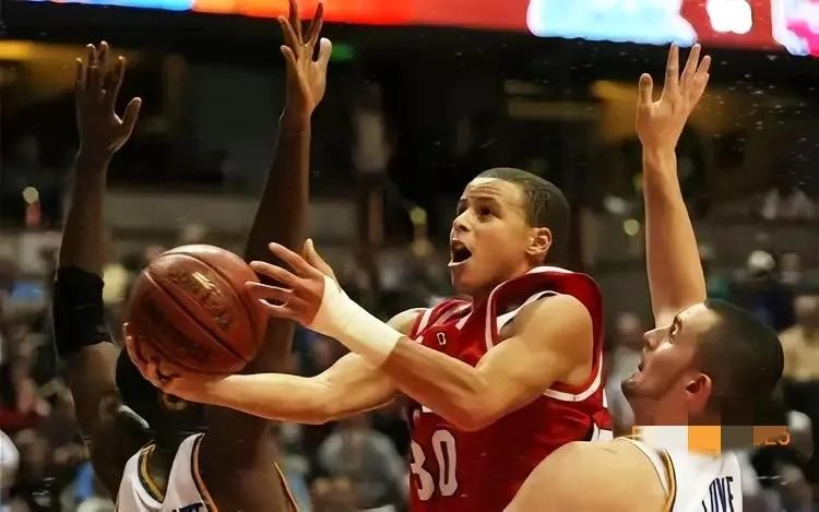 2006年,名不见经传的戴维森学院成了库里最后的救命稻草。这所仅有1700名学生的小学校,却见证了一个传奇的诞生。大二赛季对阵全美第七的冈萨加大学,这个被戏称为“娃娃脸杀手”的少年轰下40分,三分球10投8中。ESPN解说惊呼:“他投三分就像在自家后院喂猫一样随意!”
