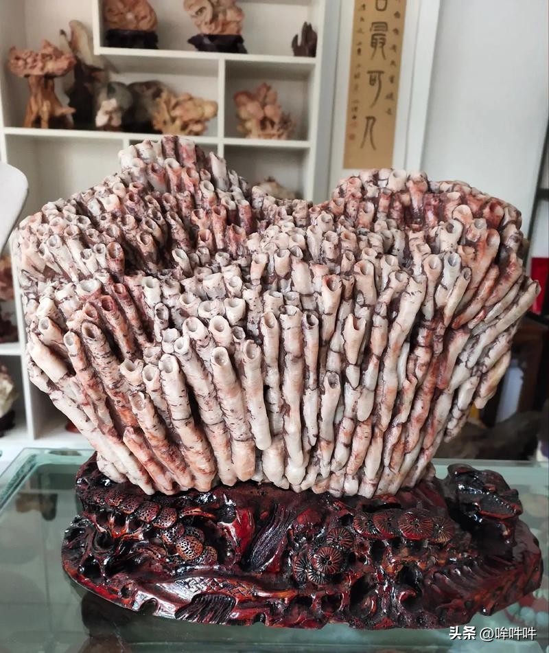 珊瑚玉它是由珊瑚虫分泌的钙质骨架,在经历数百万年甚至数亿年的地质历史时期,经过物理、化学以及生物作用的综合影响,逐渐石化而形成的珊瑚化石。这些化石不仅保留了珊瑚原本的形态与结构,更在时间的洗礼下,呈现出多姿多彩的花纹与温润如玉的质感,因而得名珊瑚玉。
