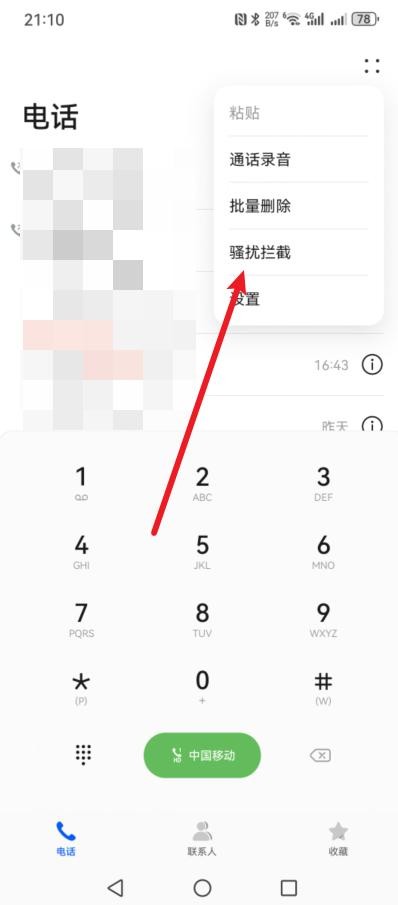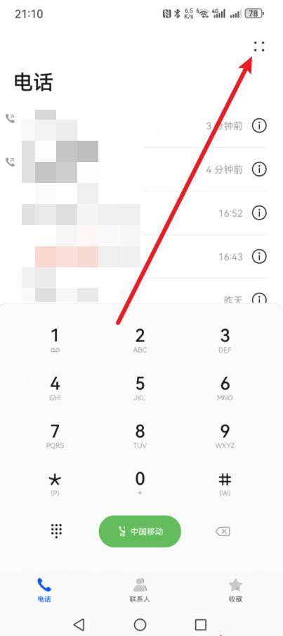 第二步:进入电话页面后,我们点击右上角的【4个点】,也就是更多选项;