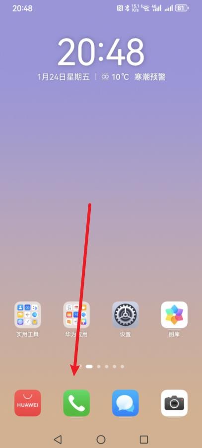 第一步:在手机桌面点击底部的【电话】选项;