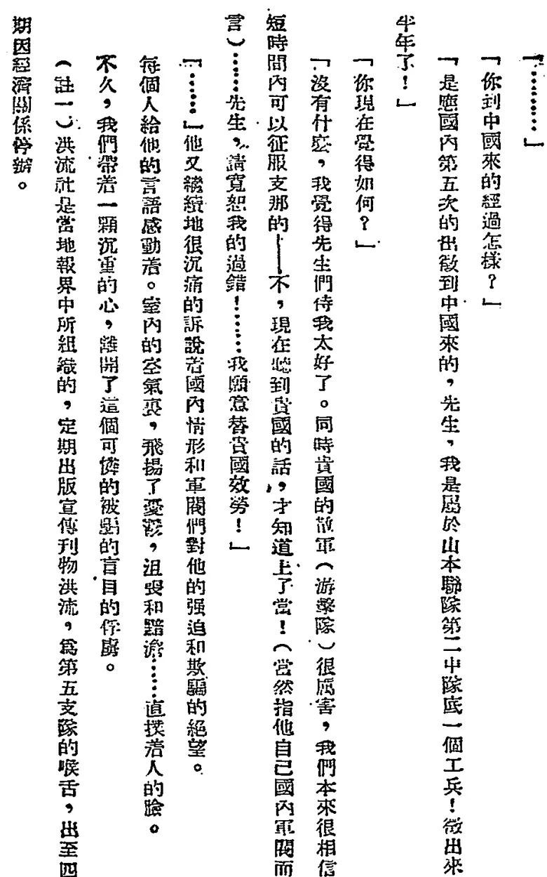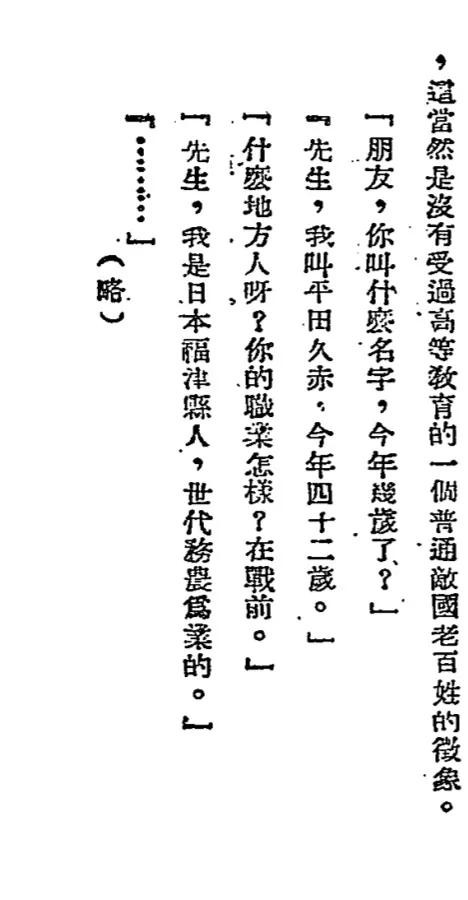被江阴军民俘虏的日本鬼子名字叫平田久赤,是山本联队第二中队42岁的工兵,日军福津县人,户口本上是日本阿乡,他说长官告诉他,短时间内可以征服支那,征明了支那花姑娘大大滴有。没想到今天被江阴强盗征服了,平田久赤在江阴颜家桥受审时还唱歌呢: