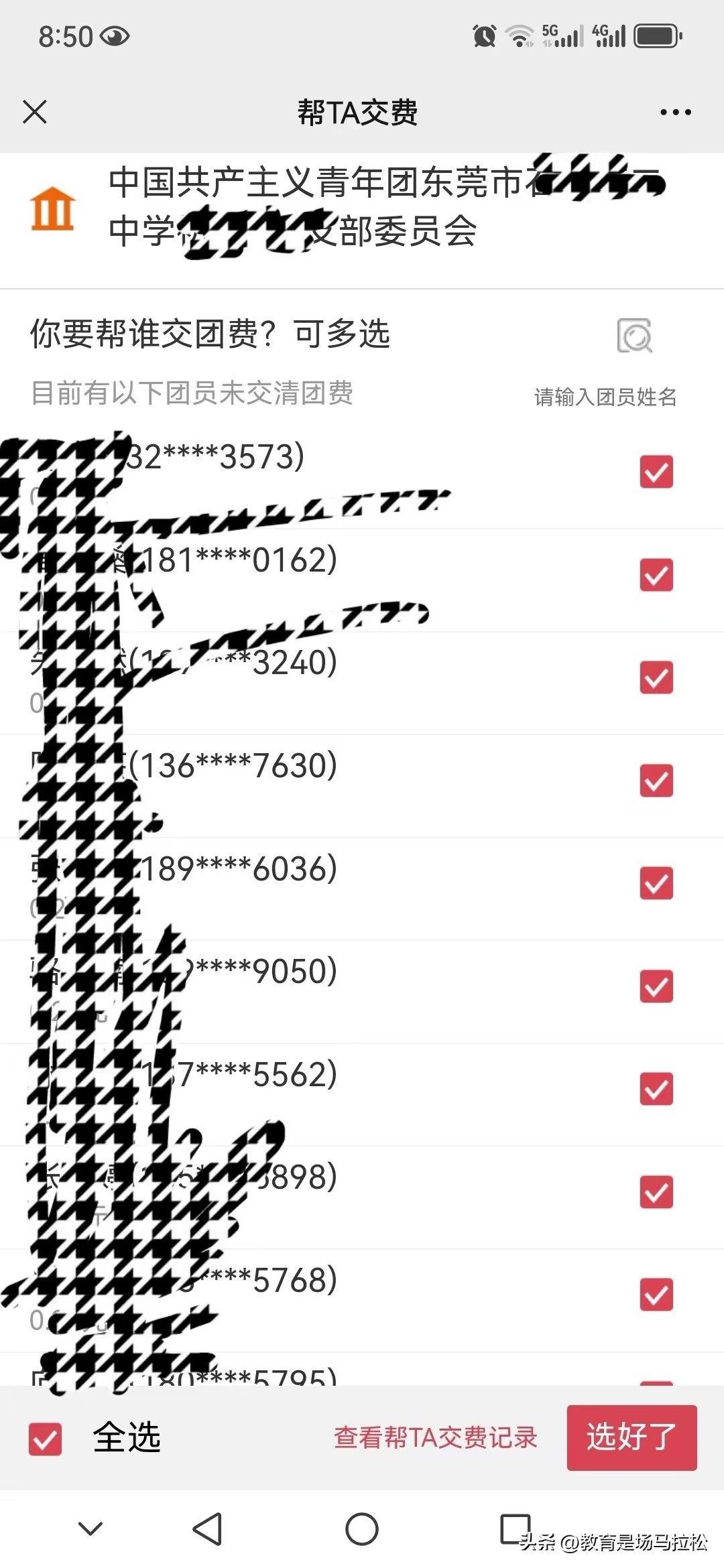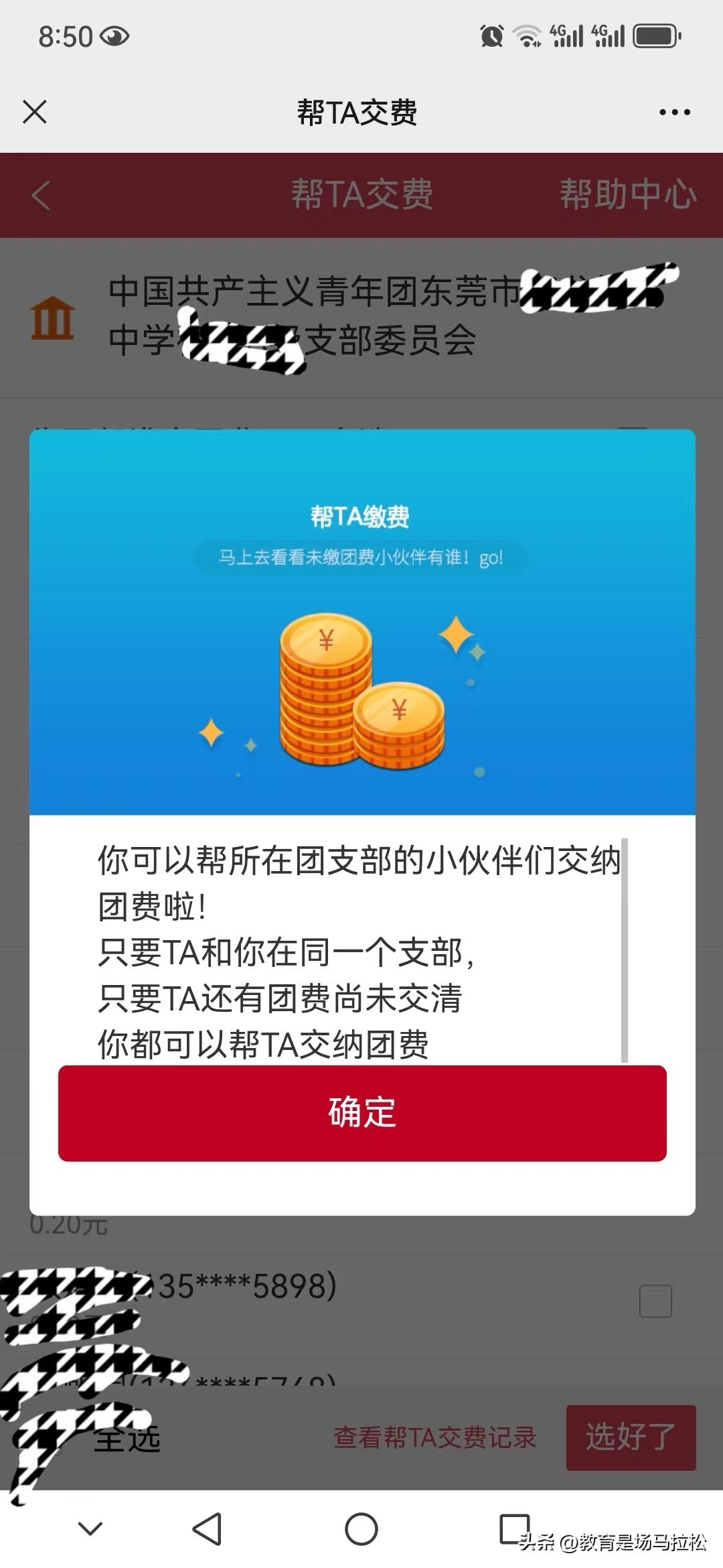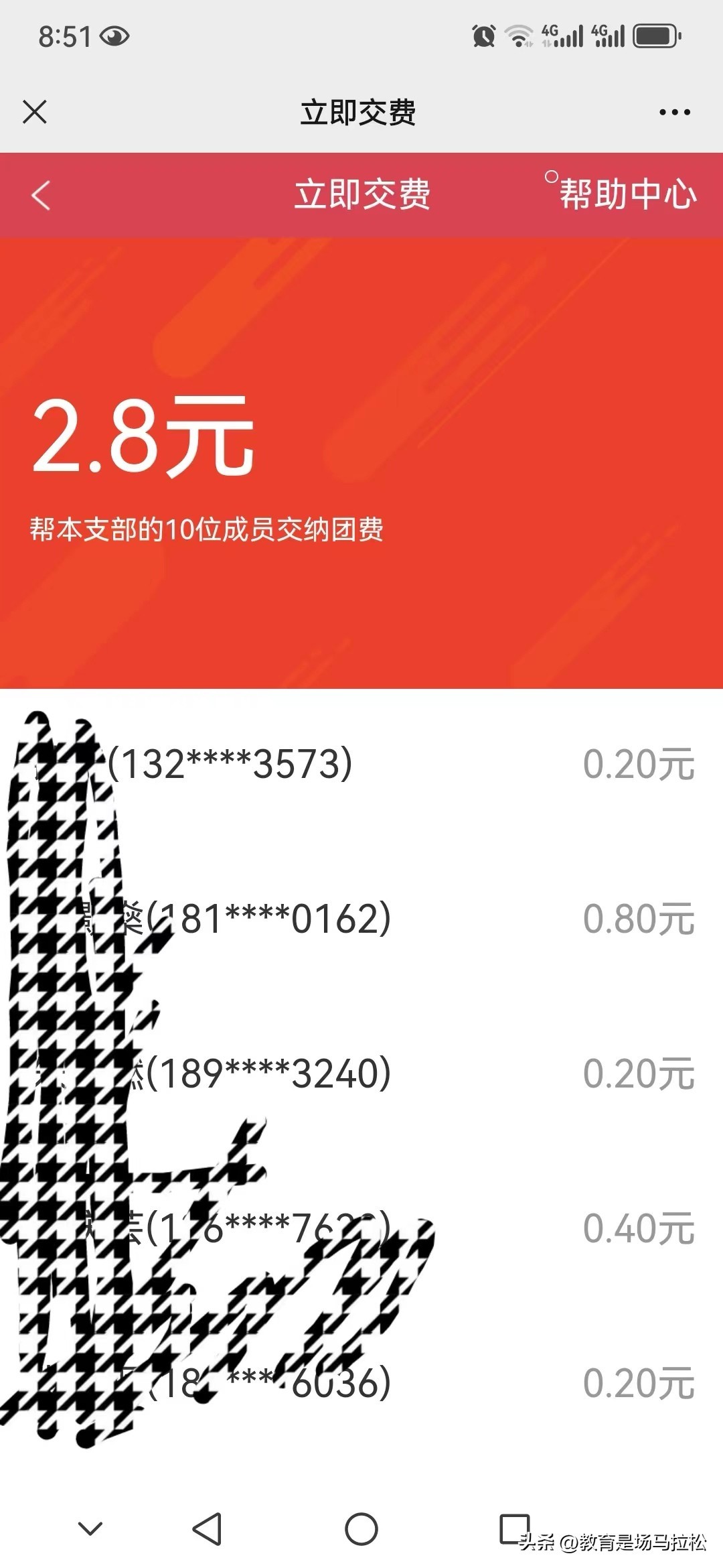 虽然只有2.8元,但是替孩子们缴完以后,感觉挺有成就感的。有的孩子已经连续4个月忘记缴纳团费了。