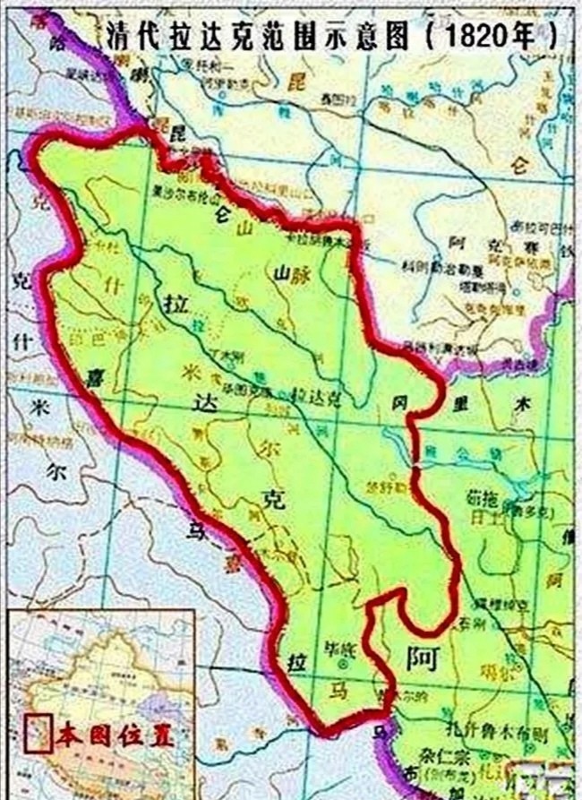 1819年,锡克王国联合查谟王国夺取了原属阿富汗的克什米尔王国,并支持查谟国王侵占拉达克。拉达克组织兵力对抗,也派人到拉萨,请求西藏和清朝政府派兵援助,但驻藏大臣和西藏地方政府却以无兵可派婉拒了。1840年查谟国王出兵占领了拉达克,被英国殖民当局封为查谟-克什米尔土邦大君。查谟国王占领拉达克后,继续向西藏阿里进军,想垄断整个喜马拉雅山直到我国新疆的贸易,梦想建立一个幅员广大的多格拉帝国。前线藏兵拼命拦阻查谟国王的部队,被击溃。清廷驻藏大臣闻知查谟入侵消息后,责令西藏地方政府派藏兵前去增援。在冰天雪地之中,藏军全歼查谟侵略军,并乘胜进入拉达克。查谟-克什米尔大君闻讯加派精兵,与藏军激战班公湖地区。他们用“水淹七军”之法,大败藏军。由于双方互有胜负,英国指派克什米尔与西藏地方在拉达克列城展开和谈,最终签订条约,双方承认旧有的边界。1846年夏天,在没有清朝代表参加的情况下,英国单方面划定了查谟-克什米尔土邦的东界,并将拉达克划入克什米尔版图。这样的界线我们承认了吗?没有。清朝政府没有同意,后来的国民政府也没有同意。