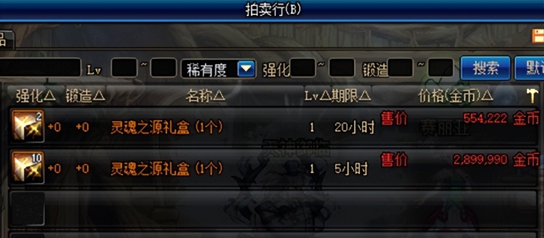 5、灵魂之源礼盒:因为奥兹玛/希洛克装备融合需要消耗灵魂之源,所以这种礼盒的价格一直保持在6、7W的水平。勇士们每天可以在融合装备的NPC处兑换10个灵魂之源,而且一些富裕的勇士每天甚至能够获得超过60W的收入。