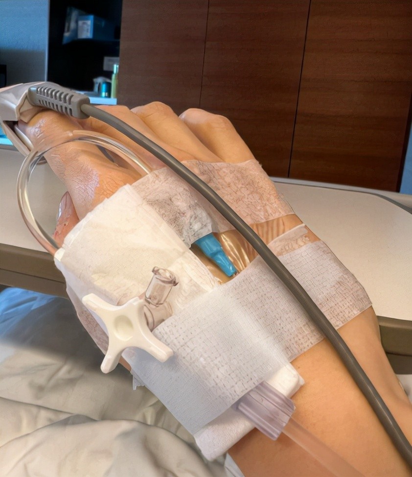 照片中,李嘉欣脸色蜡黄地躺在病床上,模样虚弱,她的鼻子和手臂都被插满了各种管子,周围的仪器也有很多,不远处的心电图检测器相当显眼。