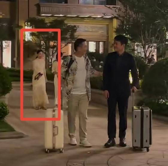 白百何脚踩人字拖,很随意地走在后面,没有一点偶像包袱,很接地气,但人字拖也显得她的脚有些胖了。