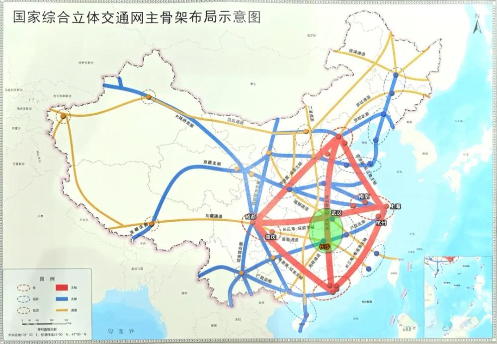 了解中国城市的网友,看到上面城市砖石型布局,是不是太熟悉了?没错,中国国家综合立体交通网主骨架几乎完全一样的图形。