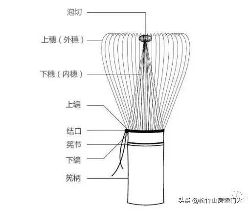 茶筅规格:茶筅根据其竹穗根数的不同可分为平穗(16本)、荒穗(36本)、野点(54本)、常穗(64本)、数穗(72本)、八十本立(80本)、百本立(100本)、百二十本立(120本)等,依次可做出不同浓薄品质的抹茶.