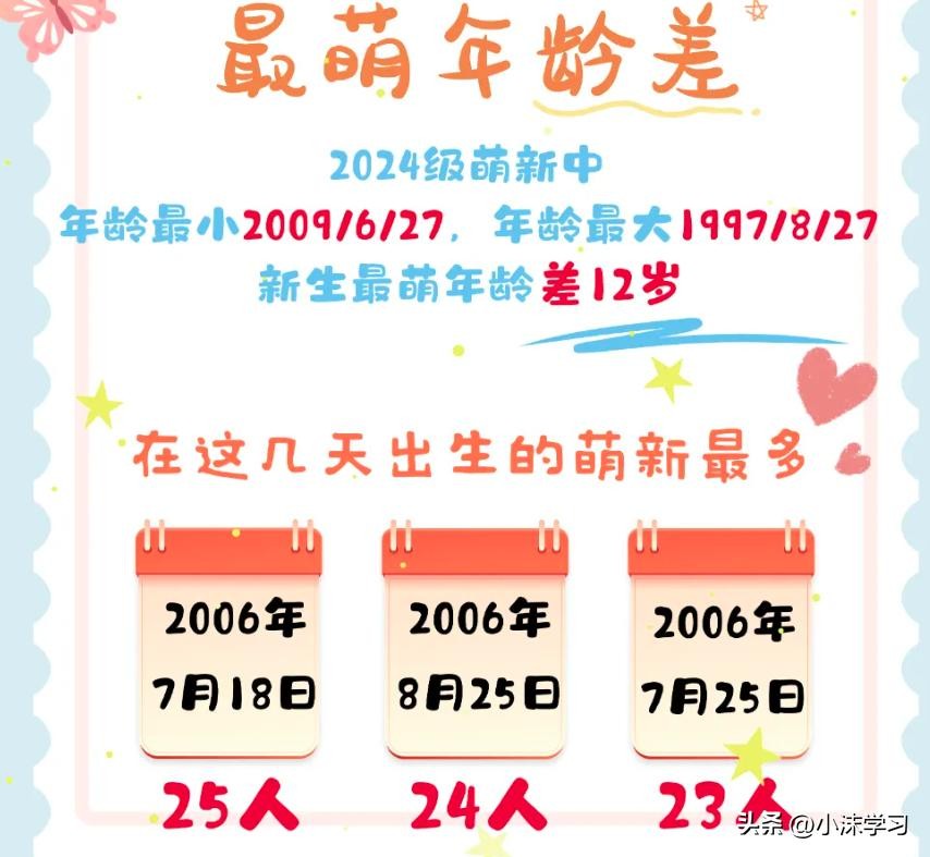 三峡大学2024级新生年龄最小的15岁,年龄最大的27岁;最萌年龄差12岁。