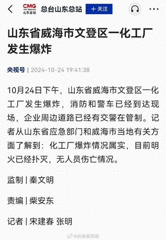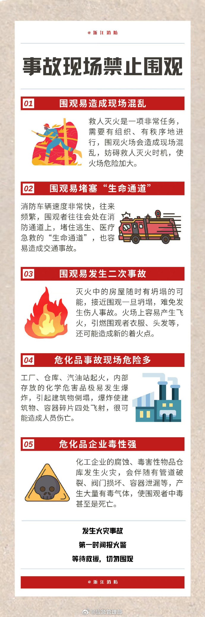 【#山东一化工企业发生爆炸# 火灾爆炸事故附近人员切莫围观】10月24日下午,山东省威海市文登区虎山路附近一化工厂发生爆炸,发出巨大响声。现场浓烟滚滚,无人员伤亡报告。消防和警车已经到达现场,企业周边道路已经有交警在管制。火场瞬息万变,化工厂火灾爆炸情况更为复杂。为自身安全,也为方便火灾救援,大家不要围观火场。以下几点请牢记↓#全民消防生命至上#