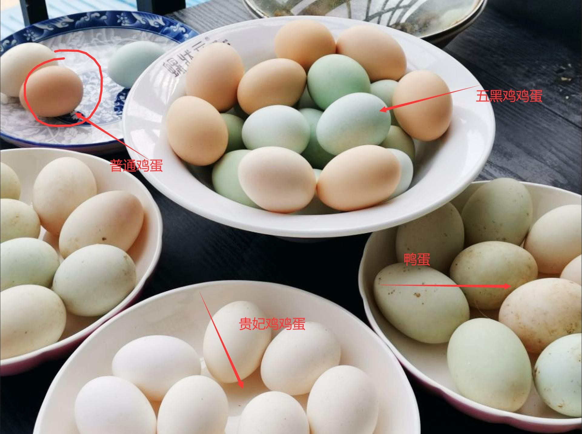这次我拿了:五黑鸡的鸡蛋,贵妃鸡鸡蛋,香麻鸭鸭蛋还有一个是普通的鸡蛋。