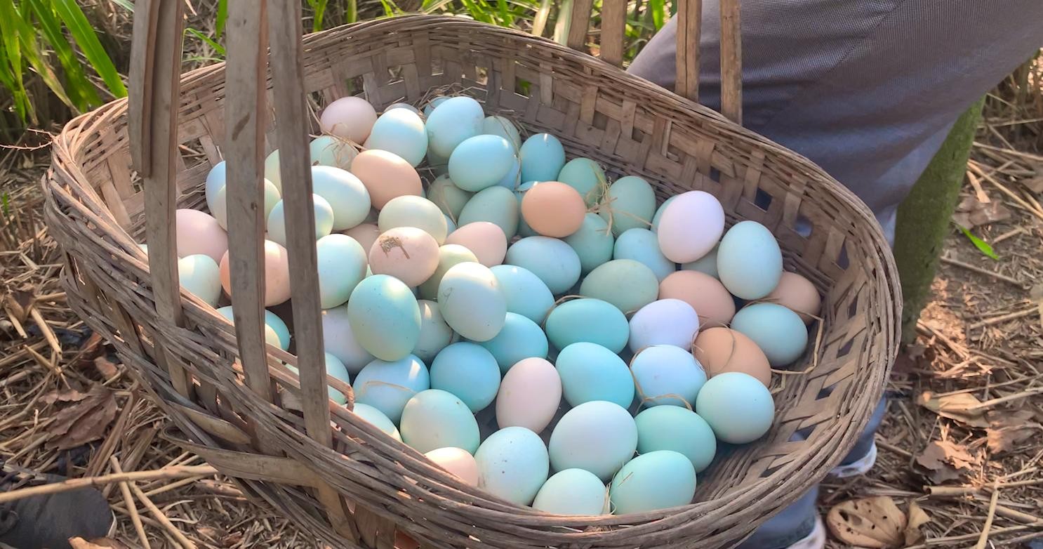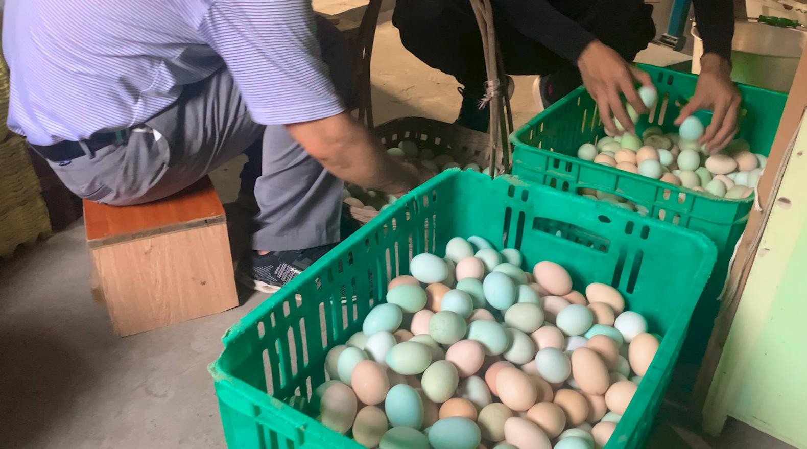 我跟养鸡的阿叔来到鸡窝里,拿了10几个鸡蛋。阿叔说,这种鸡蛋口感很好,不需要特别复杂的加工和做法,就以比较原滋原味的方式来做。我们今天的午餐就简单点:鸡蛋面条和水煮鸡蛋。