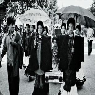 彝族姑娘们抬着音响上街,为庆祝火把节的