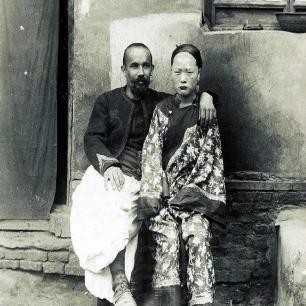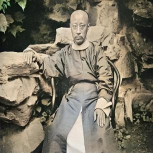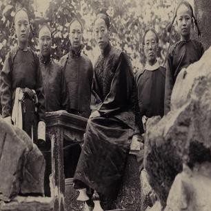 1909年,1901年,在一个饱读诗书的书香门第家族中,四名文人和一名外国朋友交流。照片的拍摄地是北京。
