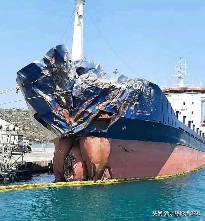 这艘待拆解的事故船,船头凹陷严重,可想撞击之猛,被撞船只状况定然更糟。