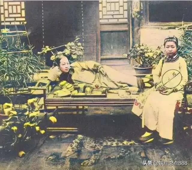 晚清某富裕旗人家中,女子着华服,虎皮毯铺地。阔太太卧榻上眼神直勾勾,尽显当时贵族生活状态。