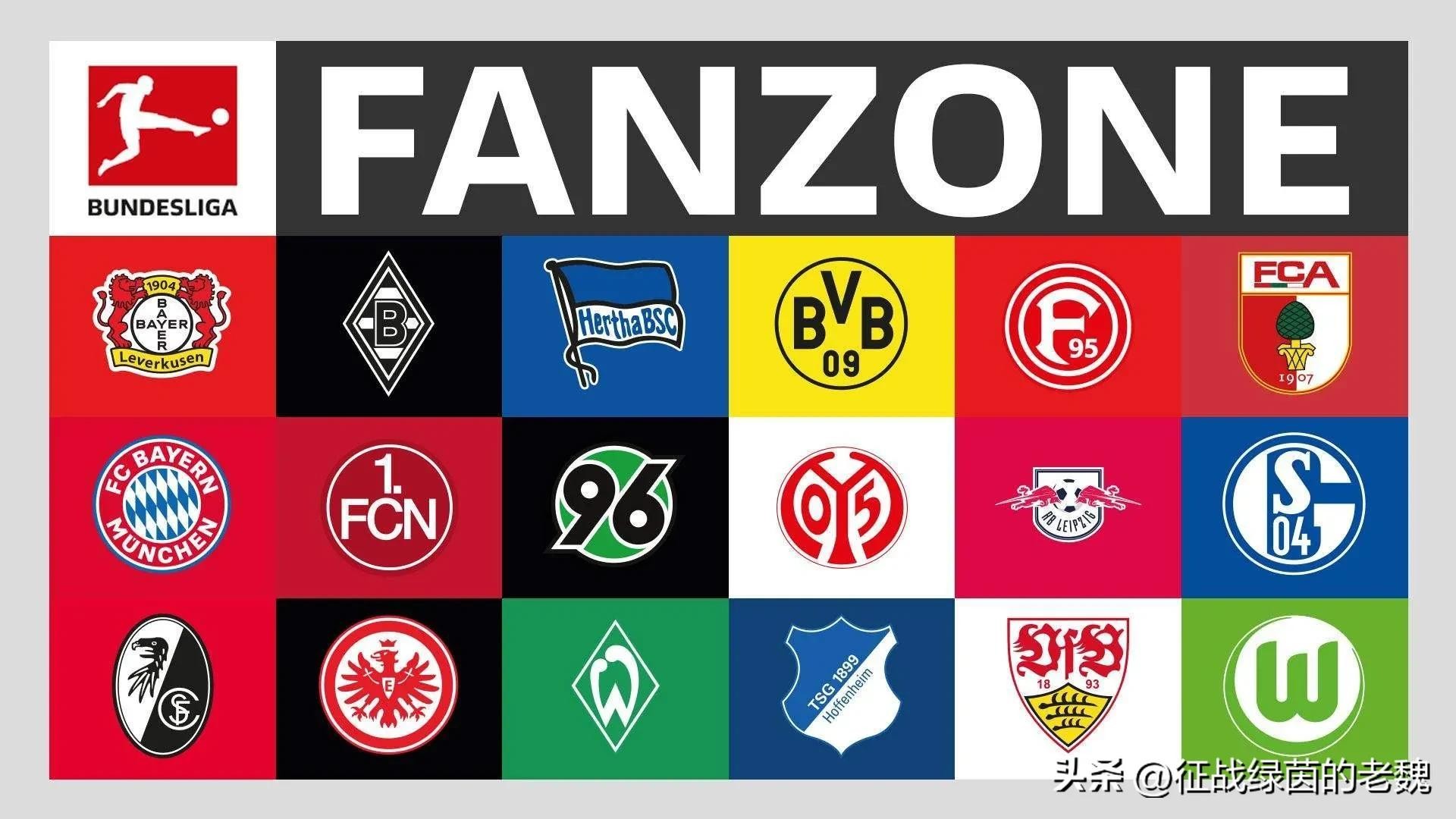 拜仁系:拜仁,沙尔克,勒沃库森,汉堡,沃尔夫斯堡,纽伦堡,科隆,霍芬海姆,斯图加特,柏林赫塔,法兰克福,莱比锡红牛,比勒费,波鸿