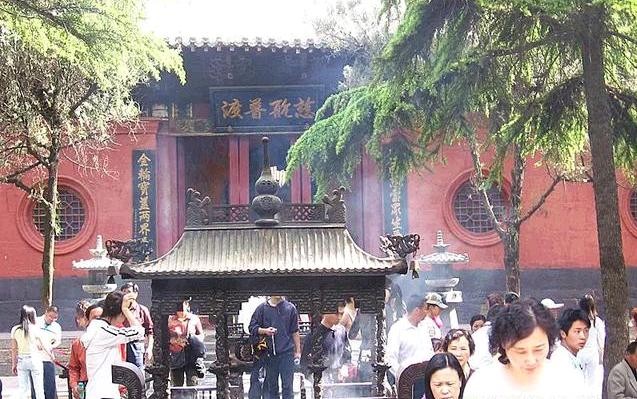 佛殿,从前到后依次分布着山门、天王殿、大佛殿、大雄殿、接引殿、清凉台和毗卢阁等主要建筑。