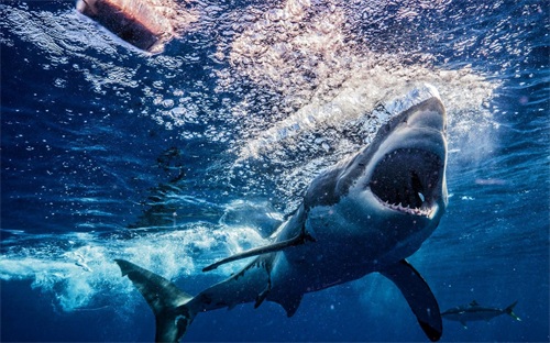 17.噬人鲨是世界上最凶猛的海洋掠食者之一,身长可达6米,体重可达2吨。它们的牙齿锋利,攻击力极强,是人类的天敌。
