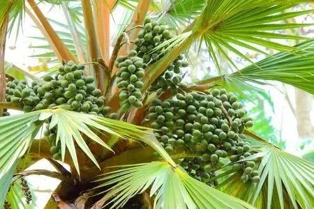 贝叶棕,药食同源。其叶入药,味微甜性热,通气活血,除风止痛;花汁可制酒、酿醋、熬糖;幼嫩种仁可煮甜食,成熟种仁有毒不能吃;树干髓心可提取淀粉食用。