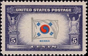 1943-1944年美国发行的轴心国占领国家系列邮票之大韩帝国国旗(图片来源:维基百科)