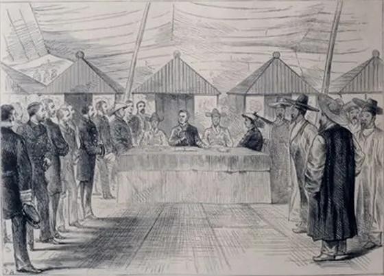 1882年《伦敦新闻画报》描绘的《朝美修好通商条约》签订场景