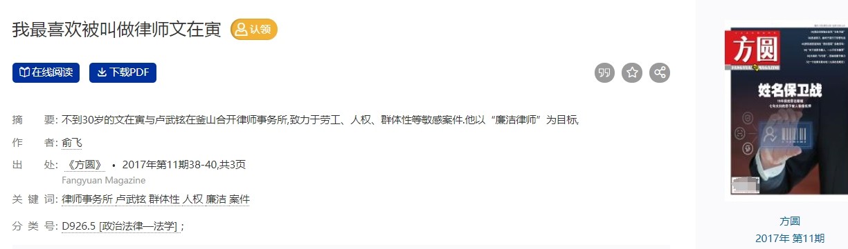 1、我最喜欢被叫做律师文在寅——《方圆》 2017年第11期38-40,共3页
