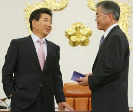 他的第一个对象就是卢武铉总统一职的接任者,李明博。