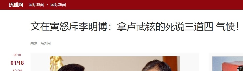 3、环球网 《文在寅怒斥李明博:拿卢武铉的死说三道四 气愤!》